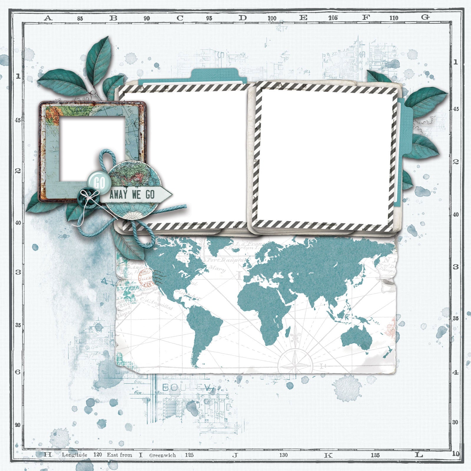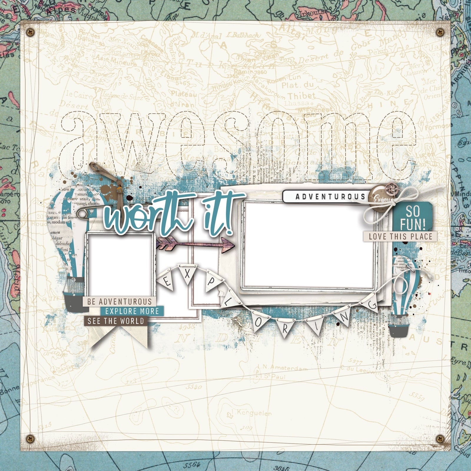 These 4 layout kits let you create high quality, amazing, multi layered travel inspired pages without the thinking. You can also mix it up and make it your own. It contains 4 exclusive patterned papers, 4 sheets of 12 x 12 inch laser cut elements and 1 sheet of 12 x 12 inch adhesive backed chipboard designs. Included is full size print of the layout plus step by step pictured directions to complete the layouts.