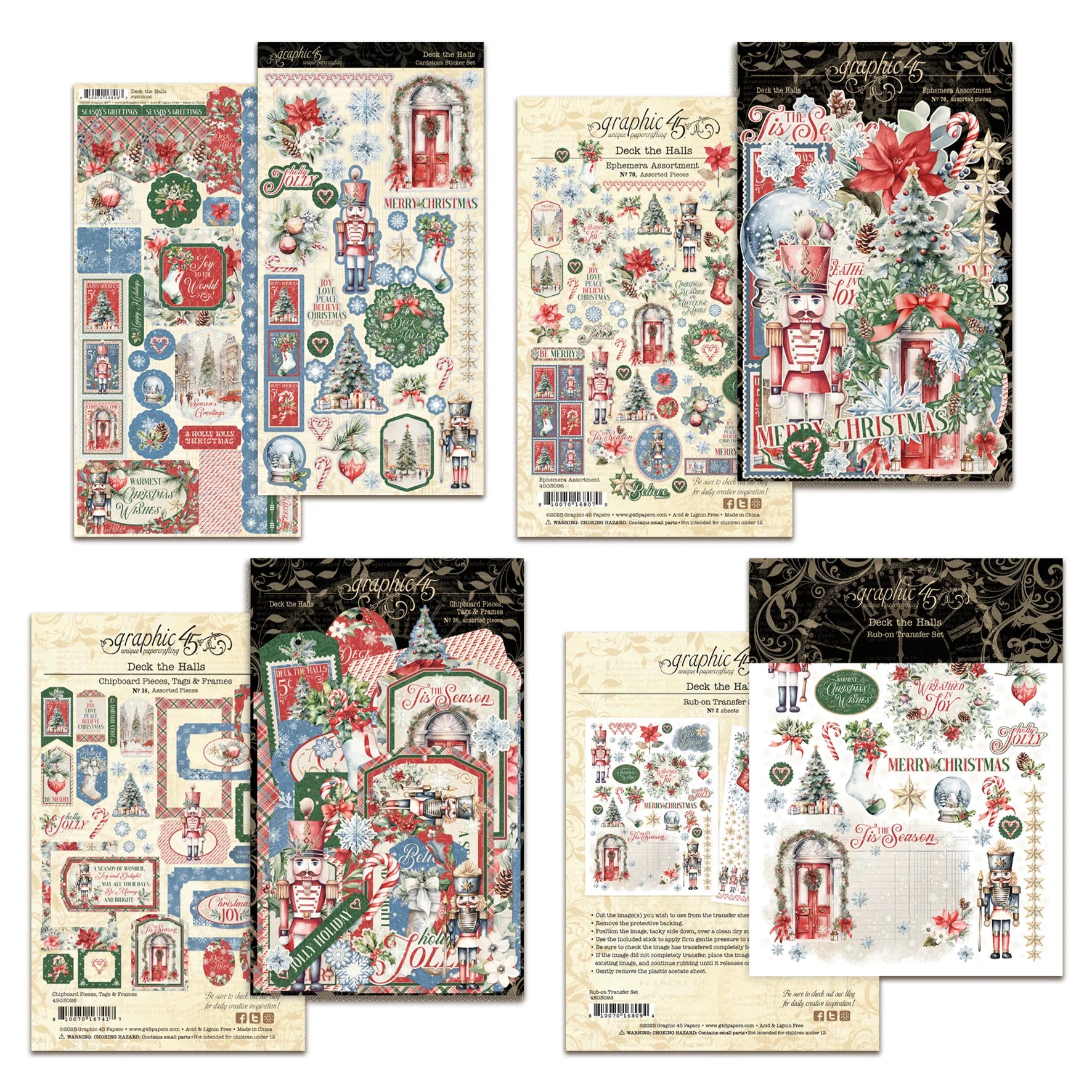 Graphic 45 Deck the Halls Rub-On Transfers