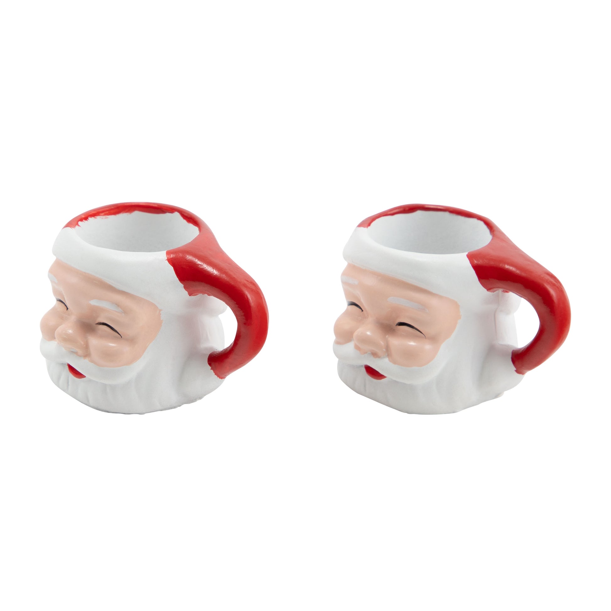 Includes 2 ceramic-look resin Santa mugs