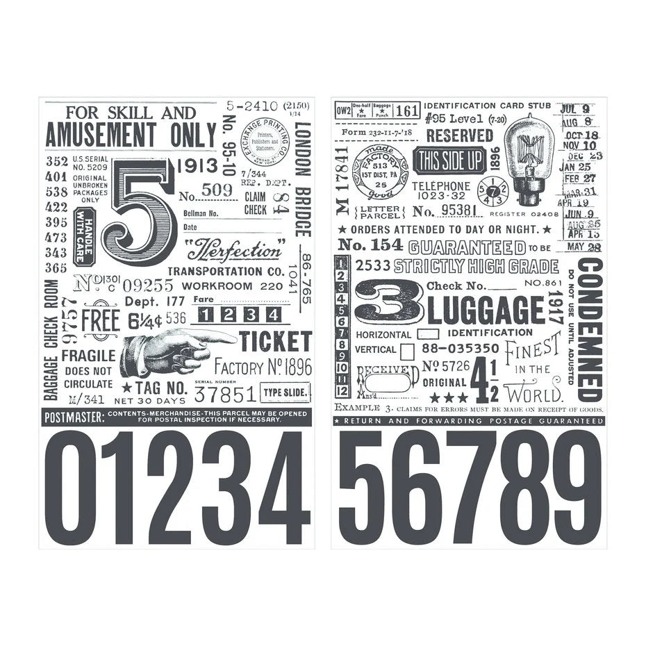 Tim Holtz Remnant Rubs Eccentric is a large array of imagery that are easy to rub-on your next craft make. The Remnant Rubs include two different sheets of numbers, words, and other elements for journaling, cards, and more. Sheets measure 8.25 x 4.75 inches Constructed of adhesive-backed paper Contains 2 sheets, 1 applicator stick