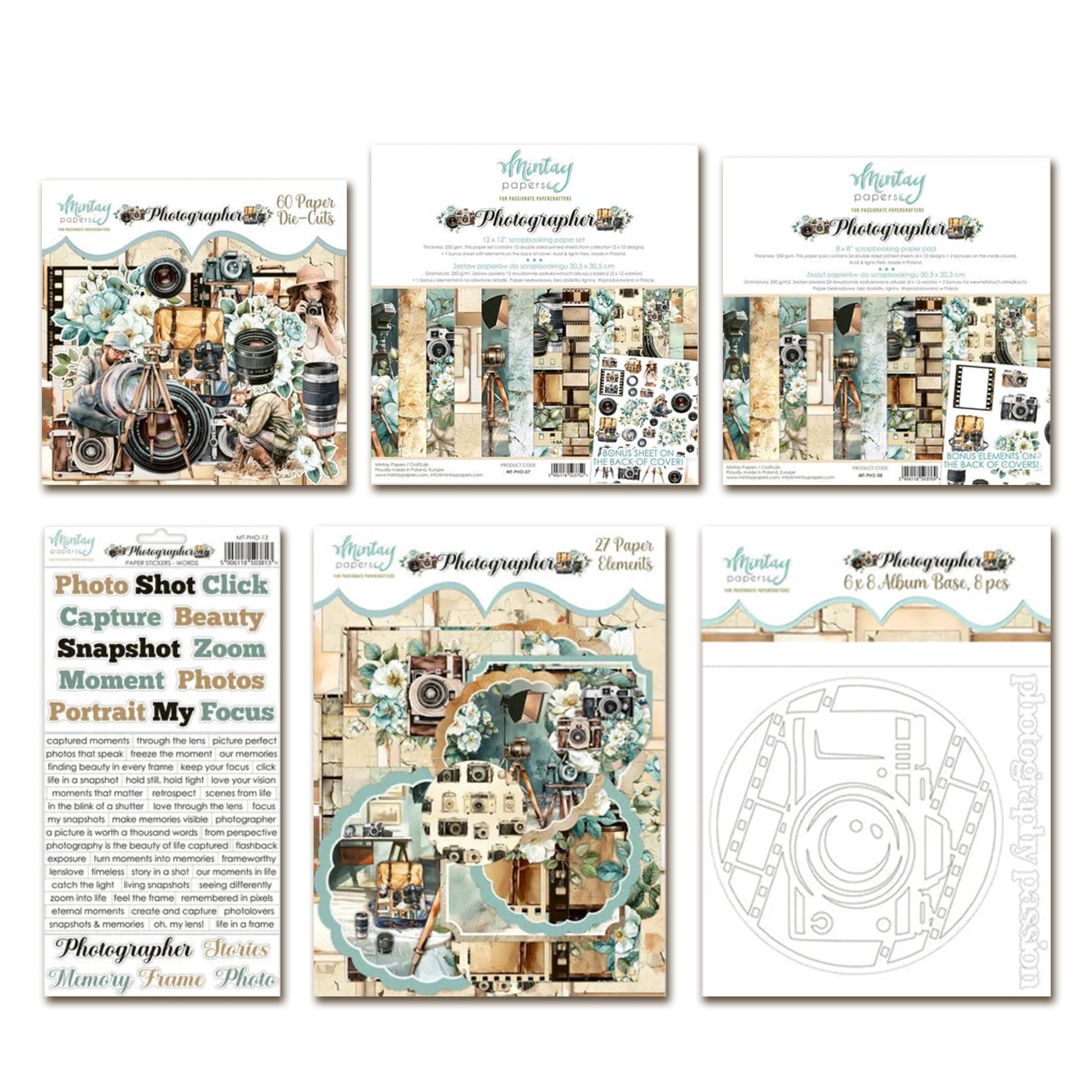Mintay Photographer 12x12 Inch Scrapbooking Paper Set