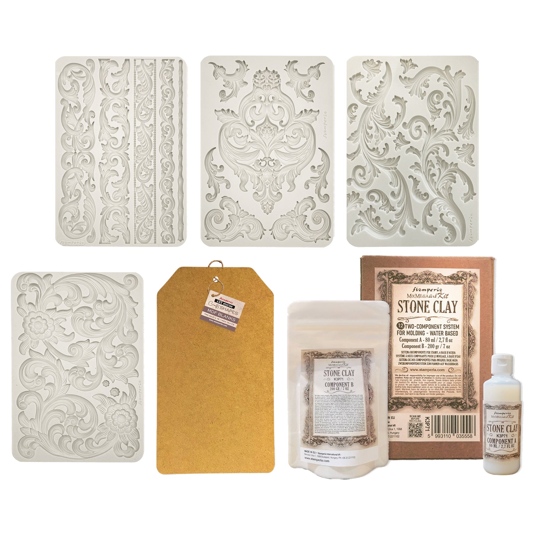 Stamperia Stone Clay Mixed Media Art Kit - Component A - 80 ml / 2.7 fl oz + Component B - 200 g / 7 oz.