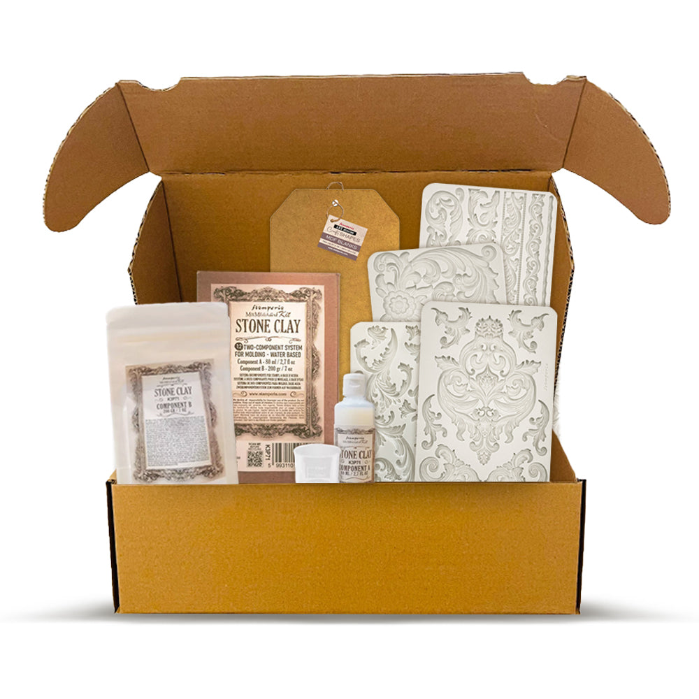 Explore your creativity with 4 large moulds, 2 packs of Stone Clay, and a big decorative tag. A perfect starting point for experimenting with our new big molds and planning future projects.